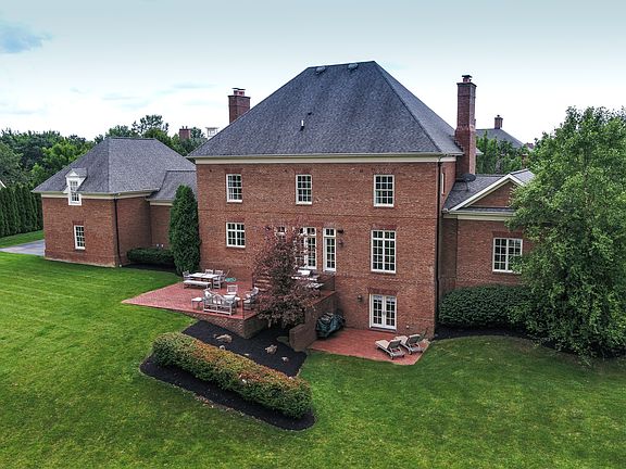 This majestic Georgian sits on over 2 private acres, rare in the country club community, that extend to the 2nd row of trees behind the house and provide a generous side yard as well. From the dramatic staircase in the foyer, the state-of-the-art kitchen and expansive owner's suite/spa, to impeccably detailed woodworking and built-ins, close attention is paid to every element in order to create a residence of refined beauty and understated elegance. Features of this gracious home include: an open/neutral floor plan, wide plank hardwood floors, granite/stainless in the kitchen, 2 fireplaces, 4 bedrooms up each with their own bath and heated floors(3BRs in center, BR#4 is mother-in-law suite with kitchen) and a finished lower level walk out with wet bar, media room, full bath and 5th bedroom