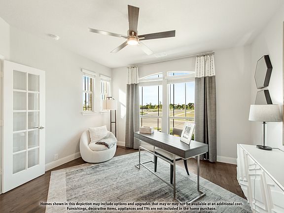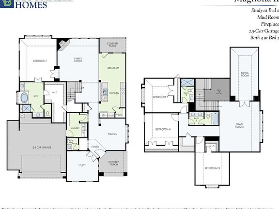 *4% Seller Contribution! Apply it toward closing costs or a rate buydown. Restrictions apply. See Community Manager for details.* NEW! NEVER LIVED IN. Ready in January 2026, this Bloomfield Homes Magnolia II is set on a desirable greenbelt lot that adds extra separation at the rear and creates a calm backdrop for the home’s two-story layout. With 4 bedrooms, 3 baths, powder bath, a study, a game room, a media room, and a 2.5-car garage, the plan balances upgraded design selections with thoughtful room placement. The exterior combines brick and stone for a strong visual profile, and the extended covered porch sets the tone for the detailed finishes found throughout the interior. Glass French doors leading to the study and an open formal dining room bookend the foyer entrance. Moving into the main living space, the family room draws attention with stacked stone reaching the ceiling at the fireplace and a span of windows that frame the greenbelt view. The Deluxe Kitchen sits nearby and features painted Shaker cabinetry in a soft neutral palette, Moon White granite, a gas cooktop, built-in oven, upgraded backsplash, pendant lighting, and a functional island that supports everyday workflows. The casual breakfast nook connects directly to the extended covered patio equipped with a gas stub, creating an easy transition to outdoor cooking options. The first-floor primary suite includes a large shower, soaking tub, separate vanity spaces, and an extended walk-in closet, while a mud bench in the laundry room helps maintain organization. Upstairs, the game room anchors the second level and leads to the media room and 3 secondary bedrooms supported by 2 full baths. Laminate flooring extends through the common areas, with tile in wet rooms and carpet in the bedrooms and upper-level spaces for comfort. Additional upgrades include window coverings, black hardware accents, full gutters, and a tankless water heater. Visit Bloomfield's model to find out more!