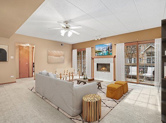 Welcome to your dream condo! This beautiful first-floor unit features two bedrooms and two full bathrooms, offering an exceptional living experience in a well-maintained elevator building. With only two owners since its construction, this home is ready for its next chapter. Enjoy the expansive layout of this open floor plan with a living area, that connects you to a dining space, office space, anything more that may fit your living needs. The cozy living room features a gas fireplace proving warmth and ambiance with two patio doors open to you private patio space with courtyard views. The kitchen is slightly oversized, equipped with a newer microwave and a **brand-new dishwasher**, making meal prep a breeze. Ample cabinet space ensures plenty of room for all your cooking essentials (Other units have opened up the home with removing this wall). There is a large amount of closet space and laundry area equipped to store all your cleaning supplies. Retreat to the spacious master bedroom, which includes a luxurious shower enclosure in the ensuite bathroom, providing a private oasis for relaxation. Enjoy the convenience of one designated garage space (#11), ensuring secure parking right at your doorstep. Located close to the Metra, commuting is a breeze, allowing you to enjoy city life without the hassle. Take advantage of nearby walking paths, perfect for leisurely strolls or active lifestyles. A variety of local restaurants and shops are just minutes away, making dining out or grocery shopping both convenient and enjoyable. This oversized condo is more than just a home; it's a lifestyle choice in a fantastic location. The current owner is selling due to a job relocation, presenting a rare opportunity for you to make this exceptional property your own. Don't miss out on this incredible opportunity! Schedule a viewing today and experience all that this beautiful condo has to offer.