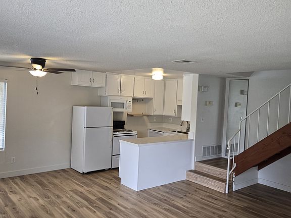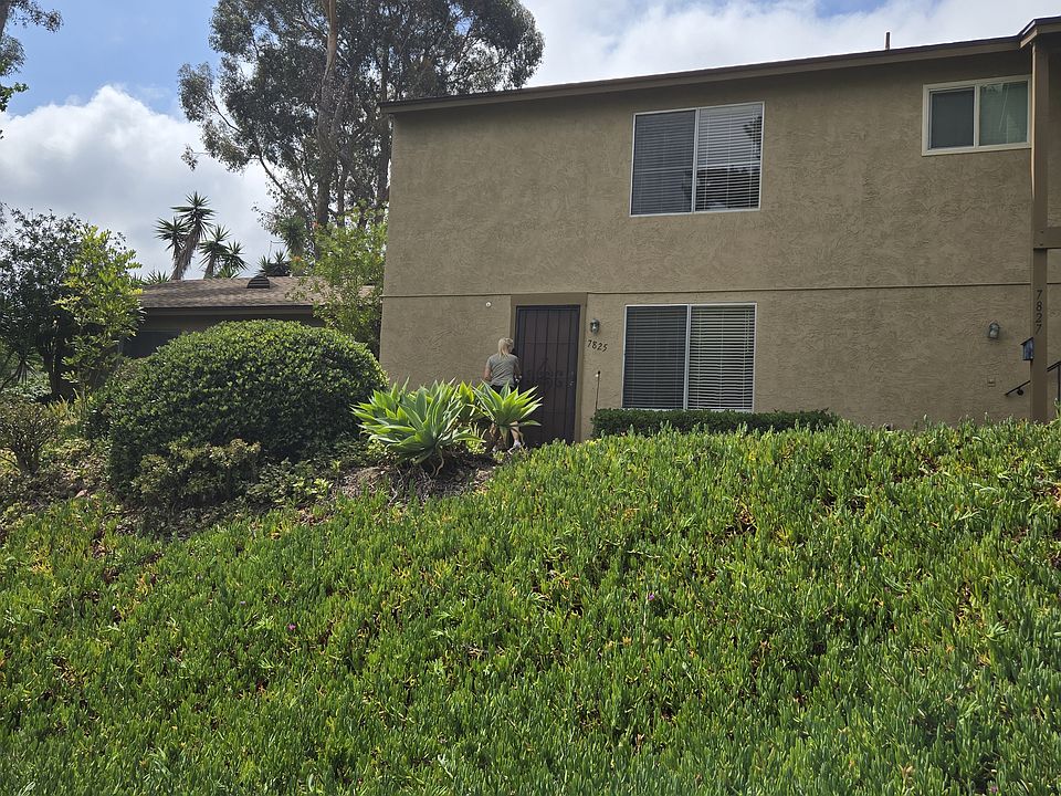 Bright unit on Rose Canyon in 4 unit building. This unit located on edge of complex, edge of canyon. New light colored luxury vinyl plank flooring throughout. New baseboards, new paint, new upgraded blinds, new screens. This unit has a new dishwasher, new sink/ faucet and quartz countertops. New fan in dining area. This unit has its own forced air gas heating system. One parking space in garage and parking space outside the garage for this unit only and several open parking spaces just outside the unit. In the garage there are storage cabinets above the nose of the parked car. There is also a private storage room inside of the garage. In the other 2 car garage in the building, there are pay washer and pay dryer and a shared hot water tank for the 4 unit building. Open street parking also available. This complex has a private pool with showers and bathrooms. Close to UCSD, Vons, metro and bus station at the UTC mall. Small park within a one minute walk of unit on a path. Right in the heart of UTC. Great location!