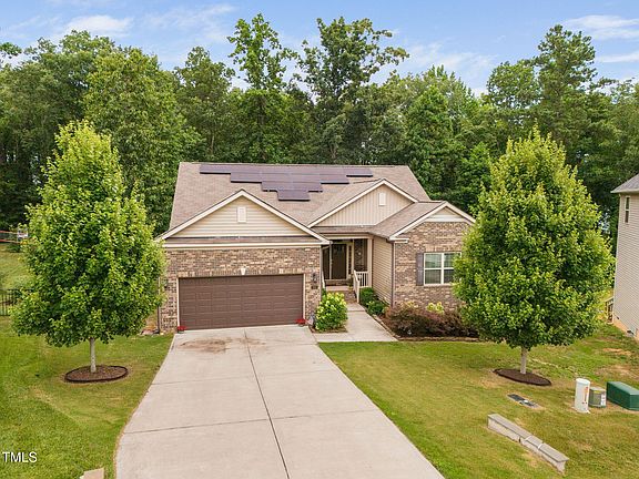 Tucked away at the end of a peaceful cul-de-sac, this beautifully updated 3-bedroom, 2.5-bath ranch-style home offers 2,201 square feet of single-level living on a lush, .54-acre landscaped lot—a true haven for garden lovers and nature enthusiasts. Step inside to discover a bright and open floor plan with granite countertops, stylish finishes, and thoughtful updates throughout. The heart of the home opens seamlessly to a fantastic screened-in porch, perfect for relaxing or entertaining while overlooking your private, fully fenced backyard that backs to mature hardwood trees. Outdoors, you'll find an established koi pond, a large custom fire pit, and a tranquil hammock area—all surrounded by beautifully maintained gardens that make every inch of the yard a peaceful retreat. The primary suite is a true retreat with a luxuriously updated bathroom featuring a double vanity, extra-large walk-in shower, and modern finishes. One of the secondary bedrooms includes a built-in Murphy bed, making it perfect for use as a nursery, home office, or guest suite. This room also has its own thermostat which is just one of many upgraded features of the home. Enjoy the energy savings of solar panels, and take comfort in knowing this home has been lovingly maintained and fully updated.