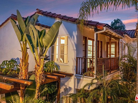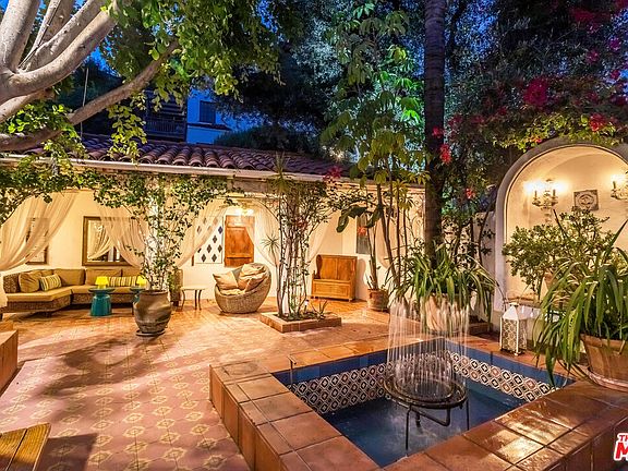 Price change - Seller relocating! Perched above the street in a walled and gated setting, Villa Rya is a private, sprawling 1938 Spanish compound combining stunning European luxury w/old-world Hollywood charm. Featuring unique, original details throughout, the 4-bedroom main residence boasts dramatic architectural elements: wrought iron, stained glass windows, exposed beamed ceilings, towering windows, polished hardwood & vibrant Spanish paver tile floors. The heart of this compound is a massive piazza-style central courtyard w/fountain, perfectly designed & accessible for entertaining year-round from the public rooms. Open & covered seating is set amongst a mature, lush foliage w/cabana lounges & an additional level w/an outdoor barbecue kitchen ideal for family gatherings & formal events. The grand living room boasts multiple seating areas and a large FP, while the formal dining room has stunning original wrought iron glass doors, small balcony, FP, & city views. The spacious dine-in kitchen features a massive prep island to accommodate even the most demanding chefs, while the lower level also features a guest bedroom ideal for visiting family members. Upstairs, the bright primary suite is a sanctuary w/ Fireplace and panoramic views of Downtown LA. The upper level also features a large guest suite w/private balcony overlooking the lush courtyard & one additional bedroom. A separate one-bedroom GUEST HOUSE above the resort-style pool & spa enjoys stunning vistas & is ideal for guests or income potential. Complete w/a motor court, solar panels, two-car garage & an oasis-like pool/spa setting, this rare find is truly an elegant retreat moments from the Sunset Strip, West Hollywood & The Grove. Enjoy this rare opportunity to experience a European lifestyle in the Hollywood Hills.
