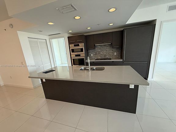 Quartz countertopsSleek porcelain floorsImpact-resistant sliding doorsOpen-concept kitchen