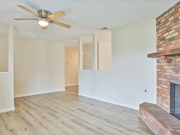 **BACK ON MARKET, BUYER COULD NOT PERFORM* FHA + VA WELCOME!* Appraisal in at $340,000! Beautifully Renovated 3bedroom 2bath home + 2 car garage & spacious backyard! A full remodel was completed on this home, from the inside out! The charming front yard welcomes you in with fresh green grass, mature trees, & brick work accents on the exterior of home. Inside is warm and inviting, with living room featuring a full brick fireplace. Kitchen is open to eat in/dining room area, with a dual pane sliding door to the patio to let in the beautiful natural light, with ALL NEW stainless steel appliances including NEW dishwasher NEW microwave + NEW gas oven, NEW quartz countertops, NEW light fixtures throughout & more. All throughout the home you will find new dual pane windows; perfect for keeping the home cool in the summer and insulated for the winter. Home also features central AC + Heat. Home features 2 well sized guest bedrooms, 1 full guest bath + 1 master suite with master bathroom attached. Bathrooms have been renovated with now vanites, light fixtures, new tile & more. Additional features include NEW wood laminate floor, NEW plush carpeting in all bedrooms, NEW interior/exterior paint & much more. Well priced & fully move in ready!