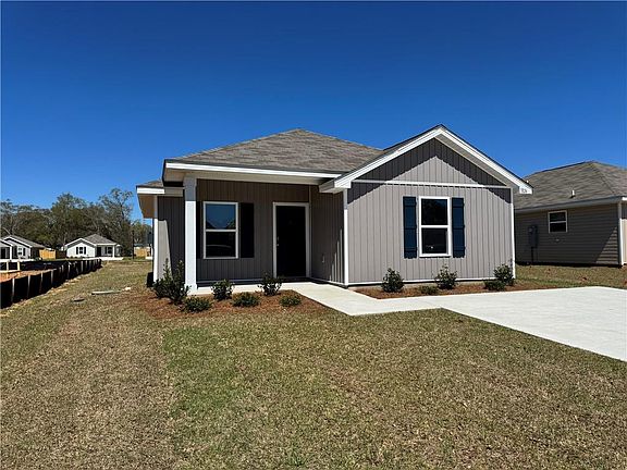 NEW CONSTRUCTION: Introducing 7826 Monterey Drive in Theodore, Alabama, one of our new homes at Oakmont Place. This charming home is located near the entrance from Creel Road. As you turn right onto Monterey Drive this is fifth home on the left. The Allanton is a cozy 2-bedroom, 1-bathroom home provides 915 square feet of well-planned living space. As you arrive home, an inviting front porch welcomes you inside. The heart of the home offers an eat-in kitchen, where meals can be prepared and enjoyed together. This open floorplan allows the kitchen and living space to blend. The living area allows for versatile arrangements in a warm, inviting environment. A hallway leads to a laundry closet and two comfortable bedrooms. One bedroom offers a sizeable walk-in closet, while the other bedroom allows for flexibility as a guest room, home office, or personal sanctuary. This charming residence offers a shared bathroom, making it ideal for small families or roommates. Like all homes in Oakmont Place, the Allanton includes a Home is Connected smart home technology package which allows you to control your home with your smart device while near or away. This home is also being built to Gold FORTIFIED HomeTM certification so see your Sales Representative for details. Pictures are of a similar home and not necessarily of the subject property. Pictures are representational only. The Allanton floorplan may be the perfect choice. Schedule your tour today!