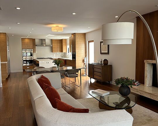 This inviting single-story luxury home has been completely remodeled. Over $500,000 in upgrades! It offers approx. 2400 sq. ft of thoughtfully designed living space. It features 3 large bedrooms and 2.5 completely redesigned baths appointed with high-end finishes. There is also a den/office/bonus room that could easily become a fourth bedroom. The gourmet kitchen is a chef's dream come true, equipped with top-of-the-line appliances from WOLF, SUB-ZERO and MELE. The expansive 8-foot center kitchen island with seating for four is perfect for casual dining and social gatherings. The open-floor plan seamlessly transitions from kitchen to dining area to living room where you can enjoy the intimate gas fireplace just steps from the tri-fold doors that open to the private balcony creating an indoor-outdoor entertaining environment. The primary bedroom is a true retreat, featuring an en-suite bathroom, with a large walk-in steam shower, a double vanity and a TOTO toilet with washlet-complete with a heated seat. The walk-in closet provides ample storage. The tri-fold doors open to a beautifully landscaped backyard, complete with a natural gas fire bowl, a pergola,and outdoor dining area and a fully equipped outdoor kitchen. The second bedroom also offers direct access through its own set of tri-fold doors. Additional features include an oversize garage with ample storage, an upgraded electrical panel, recessed LED lighting throughout the home. All new double-paned low-E windows for energy efficiency, on-demand hot water heater, wiring for an electric car charger, and a wonderful neighborhood and street. This home has been showcased in several Home Publications.