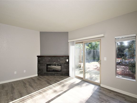 We currently have a newly remodeled 2 bedroom, 1.5 bathroom unit available! Downstairs the entry foyer with coat closet leads to the half bath and u-shaped kitchen with dishwasher and washer/dryer closet, then to the stairs and distinct dining area, and then to the sunken living room with electric fireplace. The sliding glass door opens to a private patio with garden area. Upstairs both bedrooms have lots of closet space and one has access to the continental bathroom which also opens to the hallway.