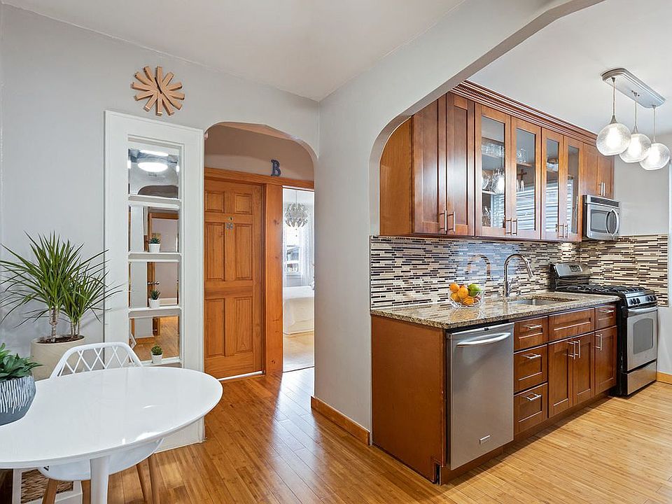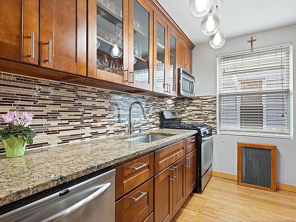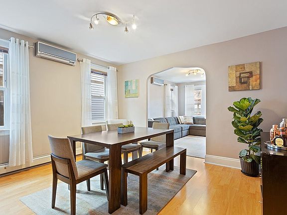 Exquisite semi-detached 2-family brick Tudor with oversized two car garage in Upper Glendale. This brick beauty really stands out from the crowd of frame homes that dominate the area. Architectural features include detailed brickwork, gabel roof, slate shingles and arched entry. Two entrances (front and side) allow convenient entry to both residential units. This home is sun-filled with natural light from a total of 31 windows. A long list of upgrades and renovations make this a move-in ready home or investment property. Both kitchens and baths have been renovated in the last few years. Eat-in galley kitchens feature shaker cabinets, granite countertops, and full stainless appliances. Each unit is metered for its own heat, hot water and electric. Both units have their own gas hot water heater and furnace replaced in 2008 including piping and radiators. New water main replaced in 2021 with 5yr warranty. Each unit has (4) split-system air conditioners with heat pumps. The finished basement offers numerous uses with high 7' ceilings, two recreation rooms, full bathroom, laundry room with new washer and dryer and excellent storage. Outside, the wide 9.5' shared driveway leads to a two car garage measuring 300sf with 8'8" ceiling height ideal for larger sized vehicles. In addition, a spacious patio is perfect for outdoor grilling, dining and entertaining. Zoned for PS/IS 119 Grades K-8 just one block away. Local area attractions include Atlas Park shopping, dining and cinemas, award winning Finback brewery, golfing, horseback riding, biking and outdoor enjoyment at nearby Forest Park and the soon to reopen newly renovated Glendale Library right up the block. Local and express bus to Manhattan on the corner with Q55 local bus connecting to the M and L subway at Myrtle/Wyckoff. This stunning home will not last. Come see the beauty, value and convenience of Glendale today. *Please view the Virtual Tour. All in-person showings are by appointment including posted Open House times. *