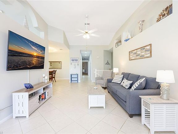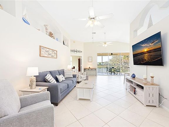 RARELY AVAILABLE TO RENT - TURNKEY - GORGEOUS - LAKEFRONT - STUNNING 3 BR/2 BA Condo with a Garage in the sought after neighborhood of The Orchards. The condo boasts an Open Concept with a Plethora of fabulous upgrades including: A Bright and Open Floor Plan, Tile Floors, Vaulted Ceiling, Upgraded White Kitchen Cabinets with Gorgeous Countertops, Walk In Closet, Jetted Large Tub, Pocket Lanai Sliders, Special Blinds and a Privacy Screen on the Lanai, Stainless Steel Appliances, Upgraded Bathrooms with High Profile Sinks with Granite Counter Vanities and Updated Lighting and Fans. The Dining Room in the condo is spacious and designed to comfortably accommodate all your guests, making it perfect for family gatherings or entertaining friends. Each room in the condo is equipped with its own TV, providing guests with entertainment options and flexibility to watch their favorite shows or movies in privacy. Separate Laundry Room. The condo also features three well-furnished bedrooms, ensuring a comfortable stay for guests. The sleeping arrangements include two King beds and one Full bed, accommodating various group sizes. This thoughtful layout makes it ideal for families or groups looking for a relaxing getaway while enjoying the Stunning Long Lakefront Views.. Beach Items are available for your rental needs. Orchards is a gated community with numerous amenities, including Two Heated Swimming Pools, Spa, Clubhouse, Exercise Room, Bocce Court, Basketball Court & a Play Area. Orchards is located close to everything - 5 minutes to Mercato, 10 minutes to Vanderbilt Beach & only 20 minutes to downtown Naples.