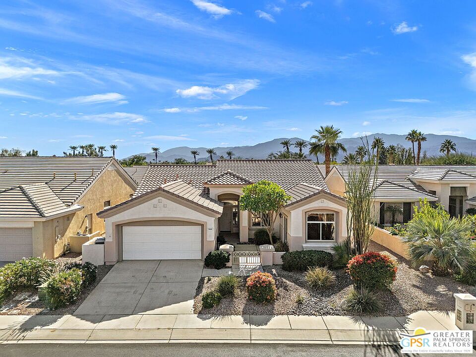Sun City Palm Desert pied-a-terre delivering sunshine, privacy, and easy desert living! Southern exposure lights up the extended pergola patio and private walled backyard, all wrapped in colorful landscaping. A gated front courtyard creates a welcoming introduction. Inside, tall ceilings and clerestory windows set an airy tone as the living areas open toward the garden and patio. The generous kitchen offers a dining area, counter seating, plenty of storage, and easy access to outdoors. The primary suite features a bay window, walk in closet, and oversized shower with clear glass enclosure. The extended guest bedroom enjoys French doors to the courtyard, and bedroom separation enhances privacy throughout. An oversized two car garage with golf cart space and a convenient side access door completes the home. All of this in Sun City Palm Desert, celebrated for its resort style amenities including two championship golf courses, three clubhouses, multiple pools, fitness centers, tennis and pickleball, dining, clubs, and a vibrant social scene. The popular Tangier layout is here, yet the setting and lifestyle take center stage.