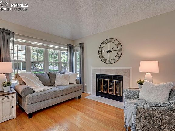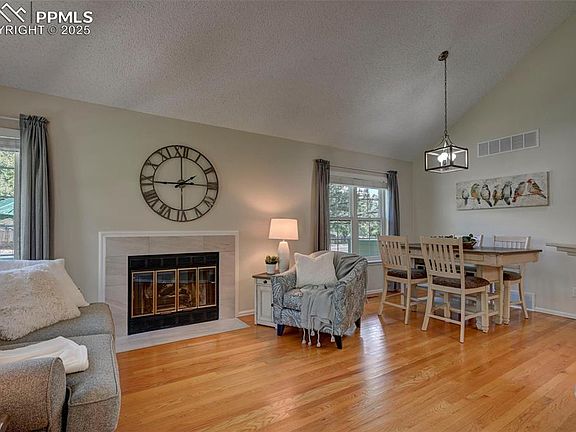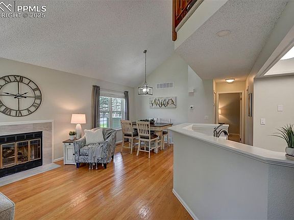 This property is located in a desirable and comfortable community with perfect placement on the northside of Colorado Springs. This charming loft-style townhome offers a unique blend of modern amenities and traditional appeal. The great room greets guests with the warmth of a fireplace and an inviting open floor plan. Vaulted ceilings create a spacious and airy atmosphere, perfect for entertaining or simply relaxing. The main floor features a primary suite complete with an en-suite full bathroom and a walk-in closet. Overlooking the great room is a comfortable loft with a skylight. Also upstairs is another spacious bedroom with its own en-suite bathroom and walk-in closet. Outside, enjoy a private concrete patio, an ideal spot for a cup of coffee or hosting a summer BBQ with friends and family. A one-car detached garage provides secure parking and additional storage. This home is surrounded by nearby parks and recreational areas and offers proximity to a variety of shopping centers, and easy access to major thoroughfares leading to local attractions.