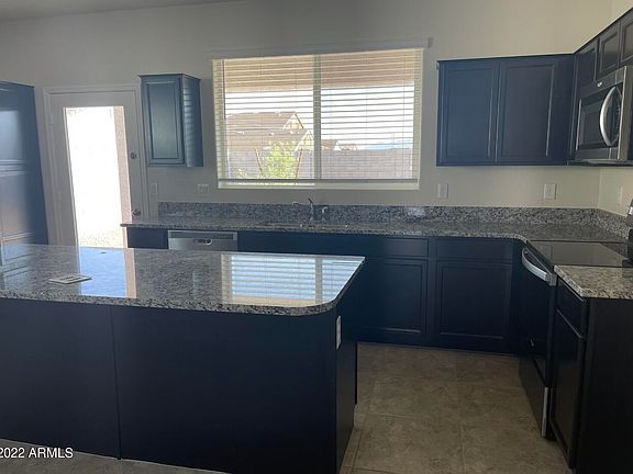 In a gated community. Home has an interim occupant, please knock although key is in lockbox. Open concept single level home floor plan with the great room overlooking the dining room, kitchen and covered patio. Granite counters, stainless steel appliances 3 bedroom, 2.5 bath and standard 3 car tandem garage. Master Bedroom double sink vanity and an additional storage room. Desert Front and back yard is rocks, blank slate.
