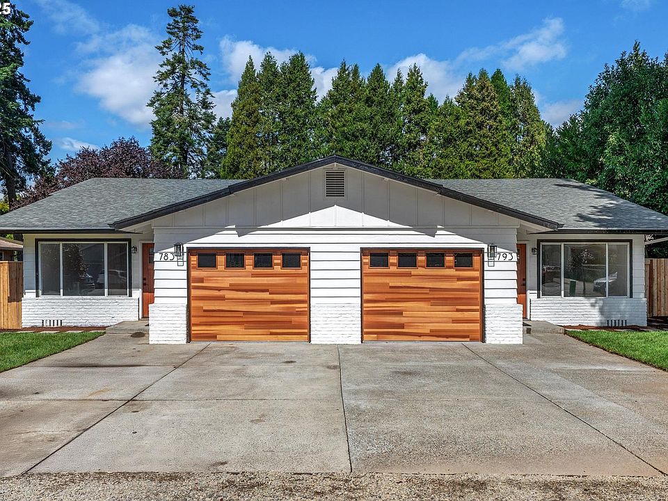 Great location for this desirable one level duplex- live in one side/rent the other, rent both, multi-generational living, endless possibilities. Each side offers 2 bedrooms / 1 bathroom. Gorgeous hardwood floors with brand new finish, new kitchen with cabinetry, counters, and appliances. New bathrooms with vanity and tub shower. New windows, slider door, interior/exterior doors, trim, lighting, ceiling fan, garage doors, interior / exterior paint, fence, furnace, hot water heater. Great fenced backyard and plenty of parking. Come home and relax, all the work is done! Perfect 10! Close to shops and great freeway access.