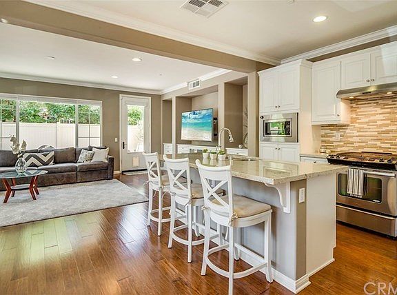 Gorgeous Freestanding Townhome located in the beautiful gated Harbor Highlands complex with community pool. This corner lot home has extensive upgrades including hardwood floors, upgraded counter tops and backsplash, built in bookcase/cabinet in living room and upstairs hallway, crown moldings in living room and master, ceiling fans, and air conditioning. Because of this home's exceptional location as a corner lot sun pours into this home making it both private and sunny. Built for today's standards this elegant and yet comfortable home is perfect for entertaining with a gorgeous kitchen with center island that opens to the great room and dining area all with high ceilings and recessed lighting. Located just off the great room is the large very private patio which is excellent for entertaining and enjoying the California weather. Upstairs are four spacious bedrooms one that is currently being used as a "man cave"/office but could be easily be converted back to a traditional bedroom. The huge master suite has a large walk in closet and spacious master bath with soaking tub and freestanding shower. Even though this house was built in 2014 it has been excellently cared for and feels like a new model home. Private attached two car garage makes for convenient access into the home. Centrally located walking distance to the park and award wining Taper Elementary and also easy access to Home Depot and Target and perfect for commuters that need to jump on the 110 freeway!
