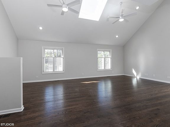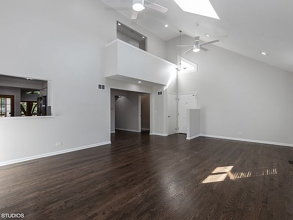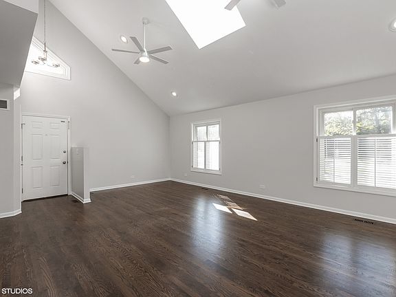 Spacious 4 bed/2.5 bath home with fabulous floor plan, vaulted ceilings, skylights, huge living room & family room with gas fireplace and sun room. French doors from family room lead to a great wrap around deck and huge fenced yard. Finished basement with new vinyl floors, tons of storage, and laundry room. 2 car garage and driveway with additional side parking or sport court pad! Close to school and shops. Choice of HP or Deerfield High School. Broker owned/interest