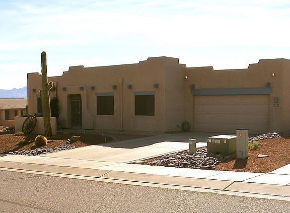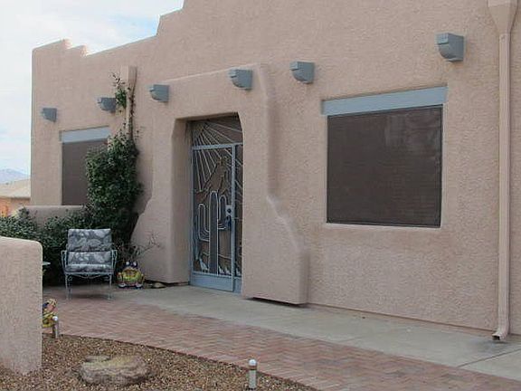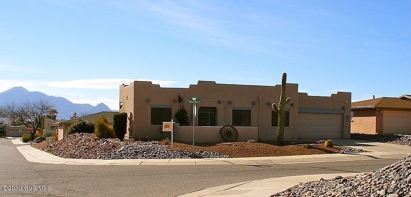 For more information on this property, contact the Listing Agent, Teresa A. Sullivan at (520) 918-8111 or TeresaS@LongRealty.com. This home says Southwest in and out! Santa Fe style exterior and a great Southwest color palette inside. Fresh interior paint and a completely new kitchen! Granite counter tops, maple cabinetry with glass doors, open shelving, self closing drawers, double roll-out lower cabs - beautiful! This is a great seasonal or year round home with tow living areas-from the back you can see the sunrise and Santa Rita Mountains. Privacy is a plus-the lot is elevated above the one behind it and is on a corner. There is a hobby/laundry/office area- natural light for your projects or just to use as a computer room. Angled and rounded walls make this an interesting floor plan. If you don't want to shop for furnishings, just make an offer on the contents of this home to start enjoying the Green Valley