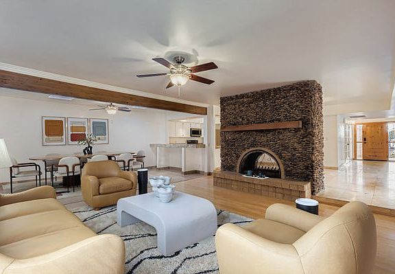 The moment you step through the beautiful Alder Wood front door, you're greeted by a flood of natural light thanks to four skylights and a bright Atrium. Imagine cozy evenings by the striking two-way stone fireplace, with the warmth of Travertine floors underfoot.