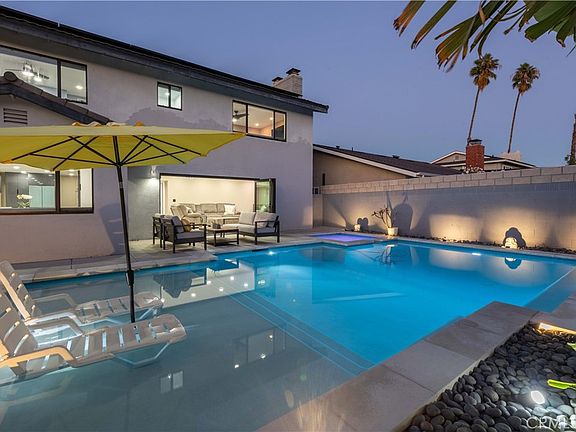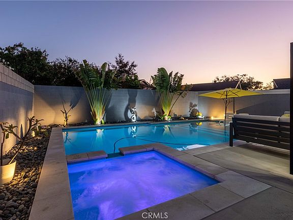 Experience luxury living in this fully renovated four-bedroom, four-bath modern home with mid-century accents in the highly sought-after El Dorado Park Estates neighborhood of Long Beach. Designed with a seamless open floor plan, this turnkey residence showcases high-end finishes, clean lines, and contemporary amenities throughout. The chef-inspired kitchen offers abundant storage, built-in appliances including a gas cooktop with downdraft ventilation, high-gloss self-closing cabinets, pullout drawers, and floating glass shelving—perfectly blending style and function. The living room features a sleek gas fireplace and a trifold glass stacking door that opens to the backyard, creating effortless indoor-outdoor living. The downstairs private suite includes a three-quarter bathroom, ideal for guests or multigenerational living. Upstairs, the grand primary suite is a true retreat with a gas fireplace, walk-in closet, private quarter bathroom, and a luxurious spa-style ensuite transformed from the home’s fifth bedroom. Enjoy dual floating sinks, a soaking tub, and an extended shower with multiple showerheads—all highlighted by custom marble, Bluetooth speakers, and designer lighting. The upstairs also includes a full bathroom with floating cabinets, and one bedroom with a private three-quarter ensuite for additional comfort. The entertainer’s backyard is a true oasis featuring a heated saltwater pool with Baja shelf and spa, custom lighting, a tranquil koi pond, synthetic low-maintenance turf, gated RV parking, and a large custom-built shed. Additional highlights include a spacious attic with dropdown ladder, paid-off solar, and proximity to Newcomb Academy (K–8), parks, restaurants, and freeway access. Every detail has been curated for a lifestyle of modern sophistication, mid-century charm, and effortless living. Close to the 605, 5 and freeways and centrally located between Los Angeles and Orange Counties.