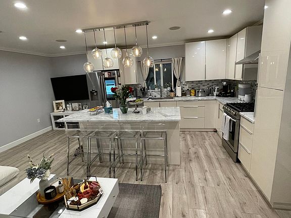 Built in 2019, this back house offers it's own separate entrance with a four car driveway. It has a beautiful cozy backyard with a stylish bbq area. Comes fully equipped ready to host. Has a custom made kitchen equipped with a newer appliances and a great island. This home has a spacious laundry room with walk in storage accessible from inside the home. 2 full bathrooms with a brand new shower area never used. It has 2 bedrooms one of which has a huge walk in closet. Comes with outside storage area. Also equipped with a car charger in the driveway for your electrical vehicle. Preferably pets not allowed. Might make 1 small dog an exception.