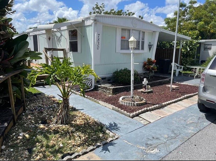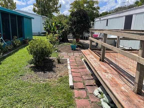 Priced to sell but does need some TLC. Most likely subflooring and flooring, paint and decking out front. Central a/c works good. No leaks. Great lot located right across from community pond. Lots of outside space. 2 bedrooms, 1 bath. Kitchen has stove and refrigerator. Community is 55 plus. Community offers a large clubhouse, Shuffleboard courts, heated pool, water, sewer, twice weekly trash pickup and on-site management. The landscape includes a wide variety of trees, three sport fishing lakes. Social activities offer pot lucks, bingo, cookouts, dances, card games, garden club, art classes, pancake breakfast, parties and much more! Lot rent is $480. Water and lawncare are not included in rent.