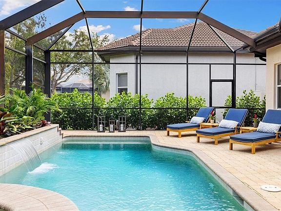 Incredible outdoor Oasis with pool, hot tub, TV, and plenty of seating in a Tropical paradise. Beautifully updated home in Ashton Place at Lely Resort with expansive lanai. This house has it all! The home features 3 bedrooms plus den and two full bathrooms. The massive private lanai includes a pool and spa. A newly updated and remodeled kitchen has it all and is a cooks dream with new quartz countertops, cabinets, and appliances. This home is offered Turnkey and also includes Players Club and spa access. Upon membership transfer, all vacationers will have access to the amenity rich Players Club and Spa featuring a full-service spa, Resort-Style Pool, and Lap/Fitness Pool, Tiki bar and Grill w/Poolside service, Fitness center w/Steam room, Dog Park, Har-Tru Tennis courts, Pickleball, Basketball, & Bocce Ball. Lely Resort offers 2 public golf courses & dining at the infamous Sam Snead Tavern. The prestigious community at Ashton Place is located only 5 min to Shopping Plazas and Restaurants, 15 minutes to Downtown 5th Ave & Naples Pier, 25 minutes to Marco Island beaches, & only 30 minutes to the Mercato.