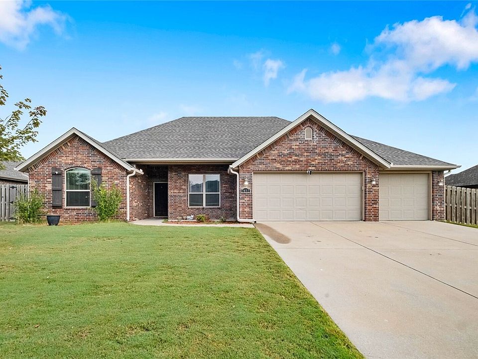 Location Location Location! Welcome home to this rare find of a 5 bedroom full brick home with a three car garage! All new paint in Oct 2025, New LVP flooring throughout Oct 2025. New Roof! Living room boasts soaring ceilings with recessed lighting, spaciously accented with gas log fireplace brick,and crown molding trim. Large Kitchen with Granite countertops framed with elevated bar seating. Stainless appliances: Range includes gas cooktop with convection oven, microwave above stove. Primary suite has dual vanity, corner whirlpool, walk in separate shower. large lot with covered patio and wood privacy fencing. Conveniently located near Har Ber High school, multiple restaurants, pharmacy, Tontitown winery and more. Priced to sell Washer, Dryer, Refrigerator can be negotiable with a full price offer.
