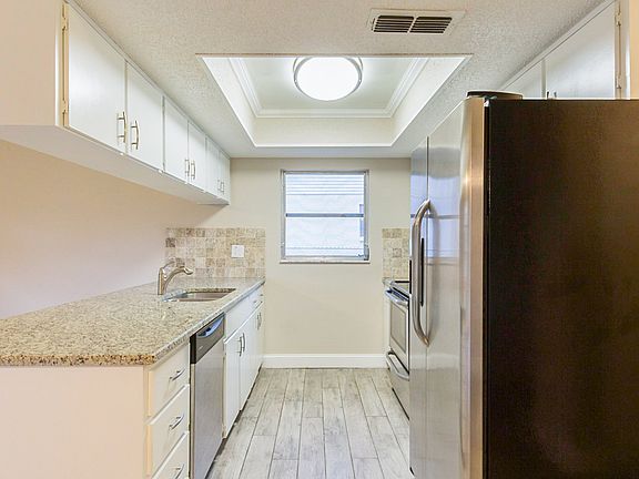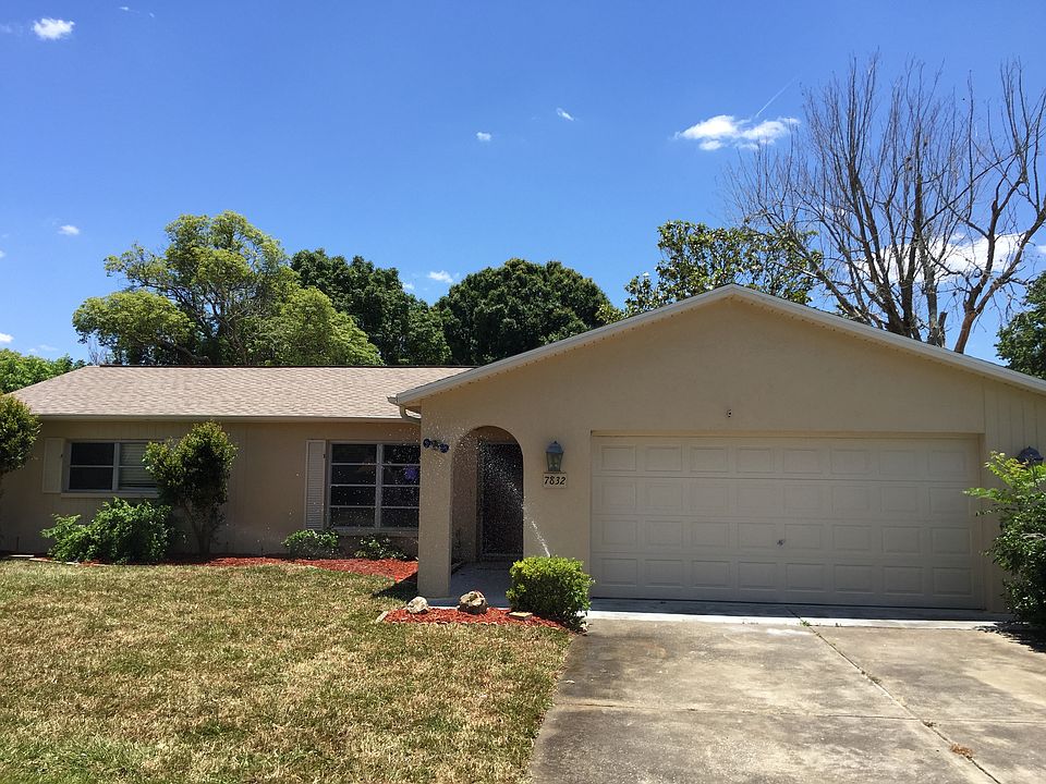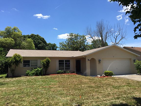 This New Port Richey one-story home offers stainless steel kitchen appliances, granite kitchen countertops, granite vanity in master bath, a covered lanai, and a two-car garage. Upgraded features include new carpet in select rooms. You can instantly unlock and tour this home any day of the week from 6 am to 9 pm, no appointment needed. Plus, every Opendoor home comes with a 90-day buyback guarantee. Terms and conditions apply.