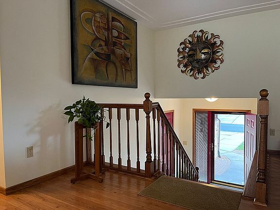 Call for showing - This updated 4 bedroom, 2 full bathroom, 3 car garage, open floor plan home is 90% maintenance free. The exterior is brick with steel siding and facia/soffits with a portion of the front cedar. The roof is 3 years old. An additional 10 inches of insulation installed throughout the attic. There is an in-ground sprinkler system throughout the property. A large cedar deck is attached with stairs leading to a spacious backyard with fire pit, multiple trees, including a Haralson apple tree, which the deer love. The 3rd garage stall has a full size garage door on both ends to pull your boat through and park on the concrete slab off the back of the garage. The family room has a gas fireplace.
