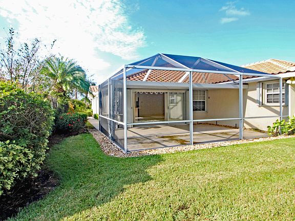 Capri villa in Lost Lake GC with a new roof and gutters in 2019, accordion shutters and replaced polybutylene pipes. Enjoy this quiet and private location with a peak of the golf course from the covered patio and extended screened area. The primary bedroom suite has 2 closets and the bath has 2 vanities and walk-in shower. The 2nd BdRm is also a private suite with full bath and a walk-in closet. Great room includes a custom wall unit with upper glass display shelves and storage cabinets below. The homes in Lost Lake are the Atlantic Ridge Preserve which is some of the highest land in Martin County. Wonderful for outdoor walking, running, biking as well as pickle ball, tennis and bocce courts. The Women's Club has an abundance of activities and is a great way to meet your neighbors.
