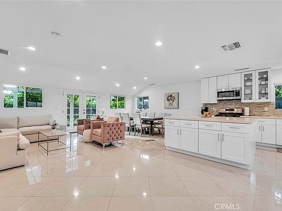 Nestled in a quaint Northridge neighborhood and within the highly rated Cleveland High School boundaries, this stunning 3-bedroom, 2.5-bathroom home offers nearly 1,600 sq ft of thoughtfully designed living space on a generous 6,000+ sq ft lot. Showcasing a modern open floorplan with high ceilings, recessed lighting, and high-end flooring throughout. Recent upgrades include a new roof and HVAC system as of 2024, along with a brand-new water heater installed in February 2025. Additionally, the home is equipped with owned solar panels, providing energy efficiency and long-term savings. The spacious living and dining area offer French doors access to the backyard retreat featuring a pergola-covered patio with mosaic pattern brick flooring overlooking a lush lawn adorned with mature fruit trees and vibrant foliage. The great room provides an inviting and seamless flow into the sophisticated kitchen, complete with a large center island, ample storage, sleek quartz countertops with matching glass tile backsplash, and stainless-steel appliances. Just off the kitchen, direct access to the attached garage with a laundry area enhances convenience. A stylish powder room off the entry is perfect for guests. The center hall leads to three well-appointed bedrooms, highlighted by a serene primary suite with an updated en-suite ¾ bathroom. The two secondary bedrooms both feature walk-in closets and share a tastefully updated Jack and Jill full bathroom. This exceptional home blends contemporary design with everyday comfort, offering an ideal setting for both relaxation and entertaining in a sought-after neighborhood.