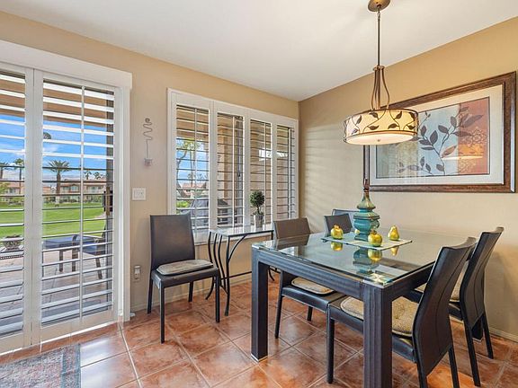 Enjoy fantastic fairway and mountain views from the elevated patio of this ground floor golf course condo. This property has had some upgrades. The kitchen features newer appliances. Bath has a custom tile walk in shower. All tile floors except for vinyl flooring in the bedroom. Turnkey furnished per inventory. Decorated in warm, neutral colors. Interior laundry. Newer HVAC system. Located close to the community pool / spa and tennis and pickleball courts. Close to the clubhouse. The inclusion of a 1-car garage adds practicality to the package. The complex's amenities include 6 community pools and spa areas, to provide ample opportunities for relaxation and recreation. The added perk of UNLIMITED golf on a Ted Robinson designed par 3 course. Featuring tennis and pickleball courts that are well maintained. Now the area headquarters for Helix Disc Golf, enhances the lifestyle appeal. Low HOA dues covering essential services, cable, and internet make for worry-free living, while convenient access to shopping, dining, and transportation adds to the property's allure. Situated across from the Indian Wells Tennis Gardens, home of the Paribas Open, this property is perfect for either full-time residence or a luxury seasonal home. Overall, it truly offers a lifestyle of convenience and luxury.