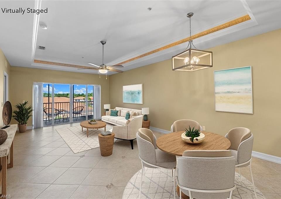 BEAUTIFUL 3RD FLOOR, 3-BEDROOM “END-UNIT” CONDO WITH RAISED LIVING ROOM CEILING, IN A PET-FRIENDLY BUILDING W/ ELEVATOR & CARPORT SPACE! This pristine & well-maintained Naples condo offers a new HVAC in 2022, new interior paint in 2020 & a new washer/dryer in 2020! Features extra natural light courtesy of the extra windows available only in a rare end-unit! This 3-bedroom, 2-bathroom residence features neutral marbled tile laid on the diagonal throughout, raised ceilings with double crown molding (12" higher in living room than units on other floors), a bright kitchen with white cabinetry, and a large laundry room with generous storage. The 3rd bedroom includes a large nook for an additional office/workspace in the bedroom. Step outside and enjoy peaceful mornings or relaxing evenings on the spacious screened-in lanai. This newer building features concrete block construction and a tile roof. Blue Heron is a gated community with low HOA fees and desirable amenities including a clubhouse & resort-style pool. Ideally located just minutes from Naples’ world-renowned white sand beaches, 5th Avenue, shopping, dining, and easy access to I-75.