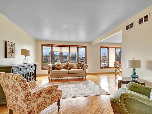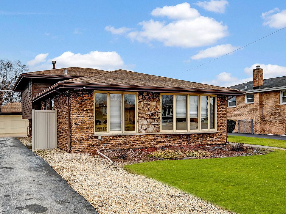 Designed with daily comfort in mind, this classic, ever-popular split-level is just waiting for you to move in. Step inside to discover a gracious L-shaped living and dining area with hardwood flooring and flooded with natural light from large windows. The bright eat-in kitchen features ample cabinet space and modern stainless steel appliances. Upstairs, you'll find three bedrooms & hardwood flooring throughout. The master bedroom offers convenient access to a shared master bathroom, complete with a double sink vanity for added convenience. Additionally, the bathroom features updated modern tile surround around the bathtub. Unwind in the relaxing family room on the lower level with a second bathroom and laundry/utility room for added convenience. Crawl-space off the family room provides plenty of room for storage. Outside, a side driveway leads to a detached 2.5-car garage, equipped with both heating and its own air conditioning, as well as a roofed patio and built-in storage shed. The backyard also has a wooden deck and a second storage shed in the back. Located in the popular Bridgeview neighborhood, this home offers a peaceful retreat away from noise and traffic while remaining just minutes from expressways, shopping, and dining amenities. Schedule your viewing before it's gone.