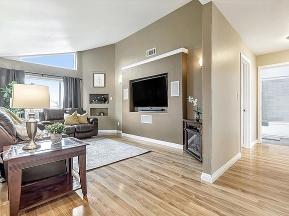 Situated in a sought-after Newark neighborhood, this single-level ranch style home boasts a vibrant and expansive layout, featuring 3 bedrooms, 1 bathroom, 1,087 square feet of living space, and is complemented by a well-designed floor plan that ensures a seamless and functional flow throughout. Amazing curb appeal with a meticulously manicured front yard, pavers, and an oversized 2+ car driveway. Entry foyer leads to a light filled, spacious living room with a vaulted ceiling, sconce lighting, built in niches for speakers and equipment, and wood laminate flooring. Kitchen with laminate countertops, decorative backsplash, dining area, pantry closet, and sliding door access to the backyard. All bedrooms feature wood laminate flooring. Updated hall bathroom includes a shower/tub combo. The backyard provides an ideal setting for outdoor gatherings and entertaining and is highlighted by a covered patio, palm trees, lush lawn, a storage shed, and side access. Other wonderful features include air conditioning, dual pane windows, wood laminate flooring, and a freshly painted interior.