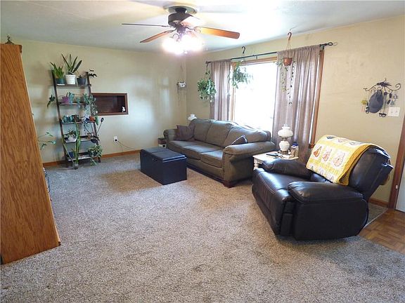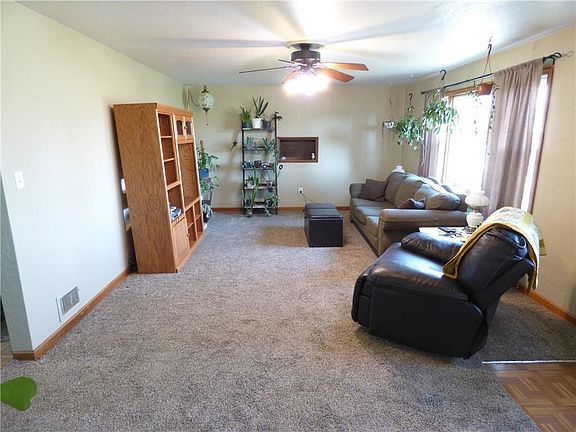 Gorgeous private setting. Large Deck overlooking big Fenced yard. Newly Remodeled bathroom. New windows (1yr) with lifetime warranty. Very Spacious Eat-in kitchen with lots of cabinets and ceiling fan. New black stainless steel appliances. Newer (3yrs) furnace and water heater. Large living room. Half garage for great storage. Carpeted Office/sunroom with ceiling fan. Hardwoods in bedrooms.