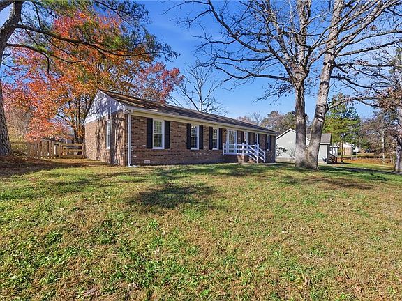 Welcome home to this charming brick ranch nestled on a spacious lot in the heart of Quinton. Warm and inviting, the living room features hardwood floors, fresh paint, and a stunning white brick fireplace that creates a cozy focal point. A second flexible living space offers room for a playroom, office, or den. The large eat-in kitchen includes solid wood cabinetry, stainless appliances, ample counter space, and a rustic sliding barn door leading to the dining room. Generously sized bedrooms offer great natural light and comfortable layouts. Outside, enjoy a huge fenced backyard complete with two storage buildings, mature trees, and plenty of room for play or gardening. With its classic charm, functional layout, and convenient location near I-64, schools, and local amenities, this well-kept home is move-in ready and great for everyday living. Don’t miss this wonderful opportunity.