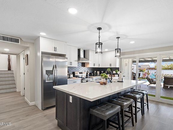 Welcome to your new oasis in Phoenix! This beautifully remodeled 3-bedroom, 3-bath home exudes warmth and energy! Step inside to discover a bright and airy living space that's been thoughtfully updated, with modern finishes and a welcoming atmosphere. The remodeled kitchen offers spacious cabinetry with quartz countertops. The highlight of this property is undoubtedly the stunning backyard, designed for ultimate relaxation and entertainment. Dive into the sparkling pool featuring a captivating water feature, or unwind under the charming gazebo. The pool area is expansive, providing ample space for gatherings and making it a true haven for outdoor living. Plus, with the recently installed pool heating and cooling system, you can enjoy the pool year round. Recent upgrades include a
