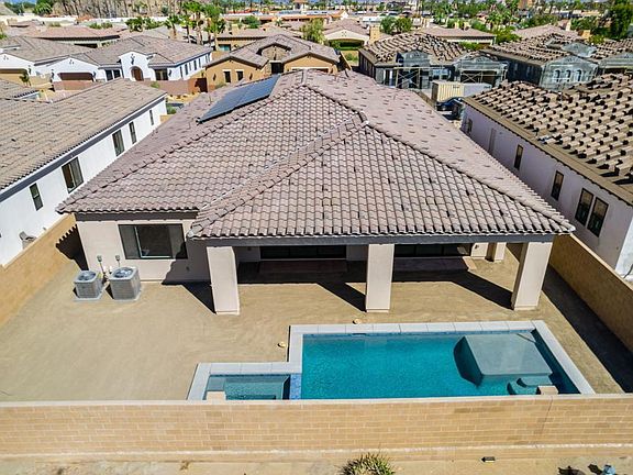 Brand new home under construction in the gated community of Point Happy Estates. Point Happy's location puts you in the heart of all that La Quinta and the Coachella Valley has to offer - dining, shopping, entertainment and golf are all within minutes of home. . The home has white cabinets throughout, designer selected upgraded quartz kitchen countertops and tile backsplash. This home comes with a private pool and spa, buyer will be able to upgrade some pool finishes. This home has 3 bedrooms and 3.5 bathrooms, includes a spacious great room and kitchen with a large island and GE Cafe stainless steel appliances. There is a large separate dining room, perfect to entertain family and friends. The home has well-appointed primary suite complete with separate shower, free standing soaking tub and large walk-in closet. The 2 additional bedrooms have ensuite bathrooms and walk in closets. The flex room at the front of the home is perfect for a home office, study or gym. The pictures are of the model home, location and finishes may vary. Seller will consider offers with a Buyer Representation Agreement