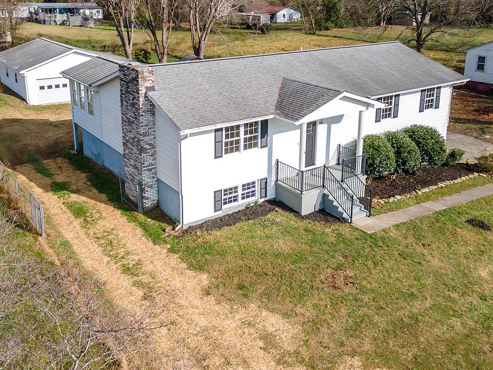 This home exudes family fun, activities and get-togethers, inside and out. Newly updated kitchen opens magnificently into the living room on one side and the dining room on the other. Kitchen boasts new quartz counters and plenty of two tone kitchen cabinets, including a massive island with electrical outlets and a convenient overhang for bar stools. Brand new matching appliances includes refrigerator, dishwasher and built-in range/microwave wall combo. Beautiful blue glass tile backsplash goes all of the way to the ceiling and pulls everything together. You will spend so much time utilizing the outside spaces of this wonderful home. The large, level and fenced backyard is ready for your pets to roam, a swing set, fire pit or some serious gardening...and undoubtedly some pool and lounging time. Backyard includes a Brand New Above Ground Pool complete with a full 40' in diameter wrap around deck with 6' privacy fence and an outdoor bathroom built into the deck. All of that is connected to the 14 x 19 covered back porch, elevated to the second story to overlook the pool and the rest of the backyard. The covered back porch is conveniently located right outside the dining room and kitchen for easy transfer of food and drinks for your pool parties, birthdays, holidays and other gatherings. Next to the pool is a two bay oversized 25 x 30 detached garage(perfect for parking, car projects or a workshop) with an 8 x 30 covered patio on the pool-side, perfect for more grilling space or just lounging in the shade or out of the rain. In the back corner of the lot is another 24 x 12 storage building with a metal roof, perfect for storing pool and lawn equipment, firewood, chairs, bikes, and etc.