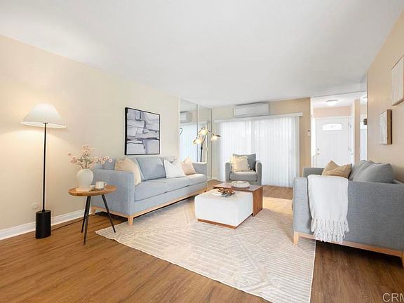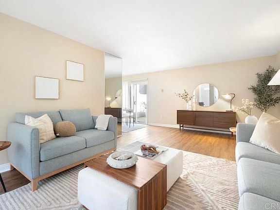 Step inside this beautifully maintained residence and discover a bright, open floor plan that perfectly balances comfort and function. The spacious living area features abundant natural light and seamless flow into the dining space and kitchen—ideal for entertaining or relaxing after a long day. The updated kitchen offers modern cabinetry, stainless steel appliances, and gorgeous recessed lighting. Upstairs, you’ll find two generous bedrooms, with the primary suite with a walk-in closet and its own private bath, providing both comfort and privacy. The secondary bedroom also features a walk-in closet. Enjoy San Diego’s year-round sunshine from your private patio—perfect for morning coffee, outdoor dining, or simply unwinding in your own peaceful retreat. Additional highlights include a convenient half bath on the main level, in-unit laundry, split A/C units, and a carport with storage cabinets. Located in the quiet, well-kept Le Mans complex in the popular Birdland community just minutes from Mission Valley, Kearny Mesa, and major freeways, this home combines serene living with unbeatable, convenient access to shopping, dining, and entertainment.