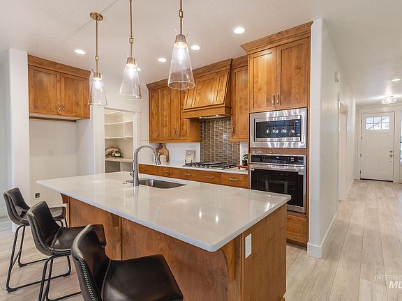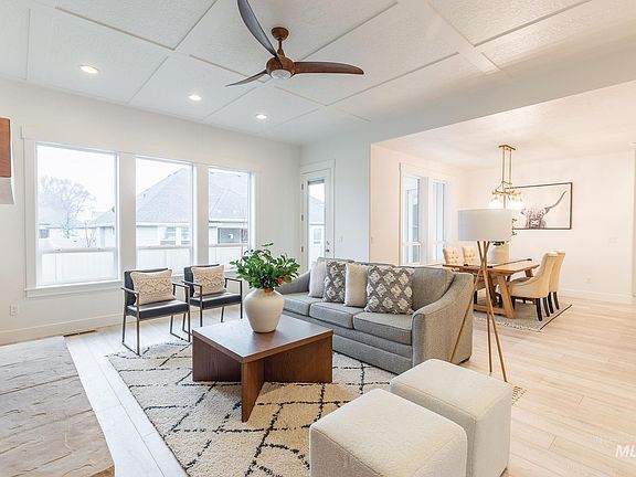 Welcome to the Yellowstone! Built by Stetson Homes, a seasoned and trusted Idaho builder, this beautifully crafted home combines quality, comfort, and style. Enjoy resort-style living in Eagle Ridge with access to a community pool, clubhouse, pickleball courts, dog park, and scenic walking paths. The open-concept layout creates a bright, inviting space ideal for both relaxing and entertaining. Upstairs, a private retreat features its own bedroom, full bathroom, and a spacious loft, perfect for guests, teens, or a quiet getaway. The kitchen offers a large walk-in pantry and stylish finishes throughout. Each bedroom includes its own walk-in closet, providing ample storage and privacy. The RV bay garage adds flexibility for extra vehicles, hobbies, or gear. With full fencing and professional landscaping included, this move-in-ready home is perfectly positioned to enjoy all the community amenities Eagle has to offer.