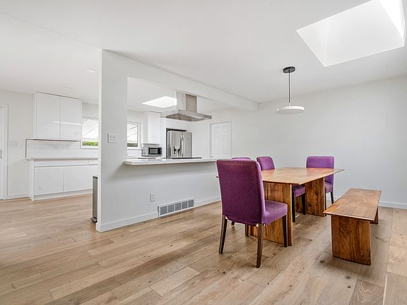 This single-level home features an open-concept living room with large windows, rich hardwood floors, and seamless flow into a beautifully updated kitchen. The kitchen boasts a spacious skylight, quartz countertops, pantry, and modern stainless steel appliances perfect for both cooking and entertaining.