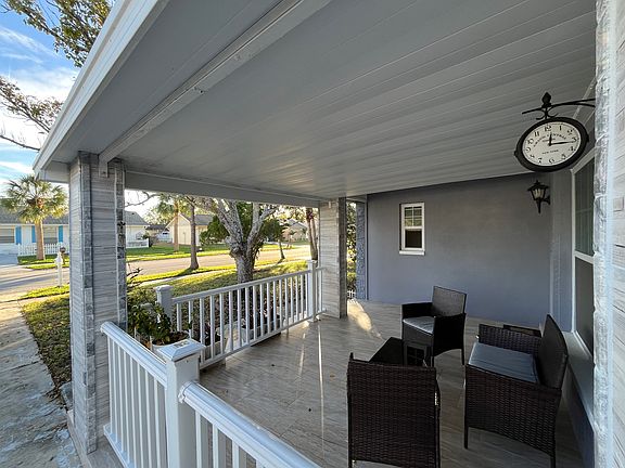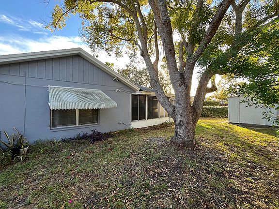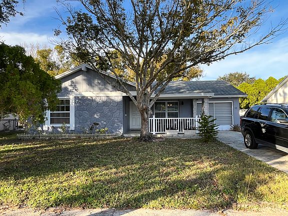 Available May 2025. Listed and managed by owner. This spacious house is located in a quiet corner of Seven Springs, close to schools, shopping, parks, and restaurants. At the entrance, you are greeted by a fenced porch. The driveway can accommodate 5 cars, or even an RV/Boat via the pad to the side. The house opens with a large living room and high, vaulted ceilings. The bedrooms are tucked to the side, connected by a hallway with plenty of closets. Past the living room, you'll encounter a spacious kitchen. The dining room awaits further ahead, where there's enough room for a second living room. The sunlit and screened back porch provides ample space by which to enjoy the serene Florida sun. Another back porch provides space for grill and outdoors activities. Plenty of shelves in the shed and the garage make it easy to organize and store anything you may accumulate. Recently-installed reverse osmosis water filtering system. New windows with hurricane shutters. Some furniture can be negotiated. First month's rent and deposit due at signing. No pets. No smoking allowed. Lawn maintenance included in rent. Tenant responsible for all other utilities.