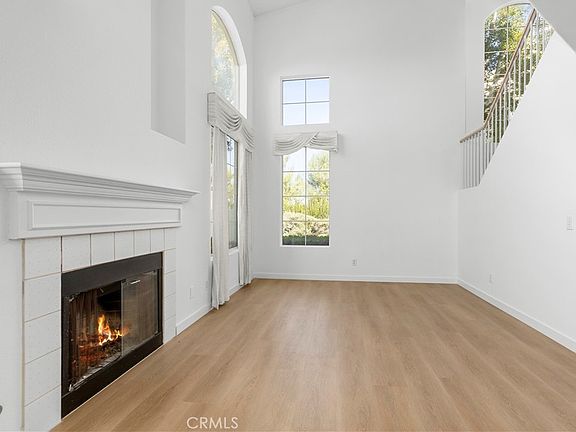 Welcome to the highly desirable Viewpointe North gated community of Anaheim Hills. This home offers 3 bedroom, 2.5 bath, fresh paint and newly installed luxury vinyl throughout the home. Spacious living room with vaulted ceiling and plenty of windows allowing natural light to shine through the living and dining space. Enjoy the fireplace on colder nights or step outside the sliding door that leads to the porch with views of the community greenbelts and enjoy the breeze. All bedrooms are located on the 2nd floor with laundry washer/dryer closet. Generous size master bedroom with a private balcony with breathtaking mountain top views. Recently installed new dishwasher, microwave and gas range. New AC unit and ducting installed in 2024. This home is a MUST SEE.