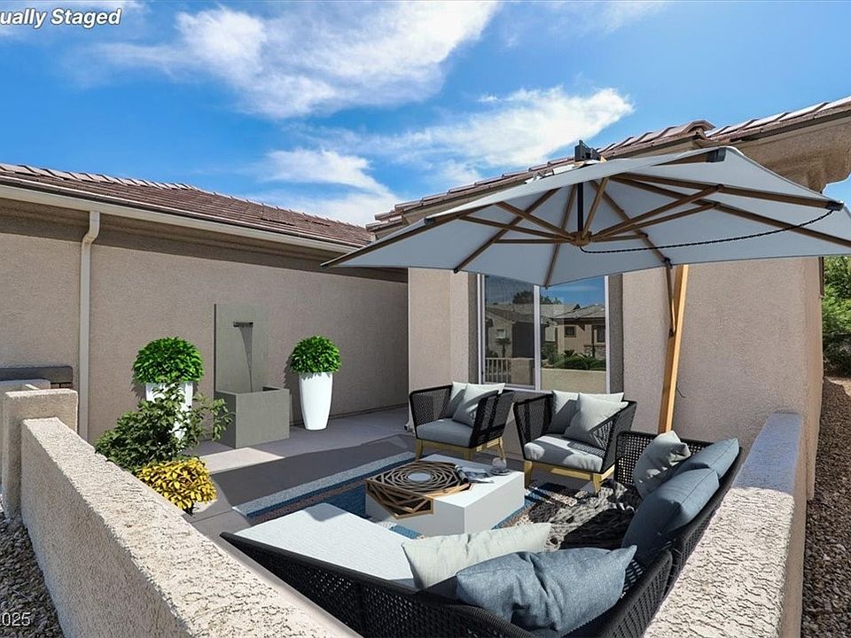 COME SEE!! BRAND NEW: carpet & pad, new stainless-steel appliances, new ceiling fans, new garbage disposal, new kitchen faucet, plus 1yr old Lennox 17 seer A/C unit, a $17k investment in 7/2024 = cold air plus piece of mind for many years to come. This 2 bedroom + den, 2 bath, 2 car garage offers an open floor plan, upgraded gated courtyard, plus a covered patio area in back, window coverings, kitchen pantry, soft water loop +more. Primary bath offers dual sinks, walk-in shower, tile flooring, & huge walk-in closet. Laundry room with included washer/dryer. Embrace this vibrant 55+ lifestyle in this stunning home in the desirable Sun City Aliante Community. Explore all the amenities Sun City Aliante has to offer... golf course, fitness center, library, pool/spa, social clubs, game room, tennis courts, pickle ball, business center, walking trails...endless opportunities & friendships await. Located near shopping, pharmacy, restaurants, Casino, 215 freeway, parks, Quick Care & more.