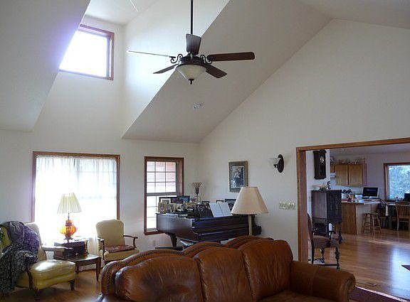 Incredible and useable 32+ acres; fantastic views of Pikes Peak and Mt. Pisgah; three sides fenced; 6-stall barn with separate feeding & tack rooms; great well and 1500 gallon cistern. Fantastic home with wood floors; large kitchen & dining room with wood stove; large living room with gas fireplace; walk-out Master Suite with 5-piece adjoining bath with jetted tub; upper plant ledges in Master; lower-level walk-out with exercise room, 3 bedrooms, large family room with wood stove, 3/4 and full baths; 90% efficient furnace & laundry room; detached garage with 22x40 open bay. Great setting. You wont be disappointed with this unique property!