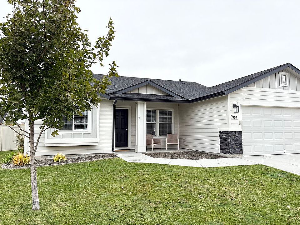 Open floor concept with brand new carpet and flooring. Fully fenced yard with mature trees and automatic sprinkler system. Includes storage shed, RV parking pad, swing set, and patio with cafe lighting and shade awnings. Close distance to Rock Creek Elementary, BlueRock Farm Market, Walmart, & St Luke’s Hospital. Enjoy the benefits of contemporary living, friendly neighbors, and community. This home offers comfort, style, and future value in a location prime for growth!