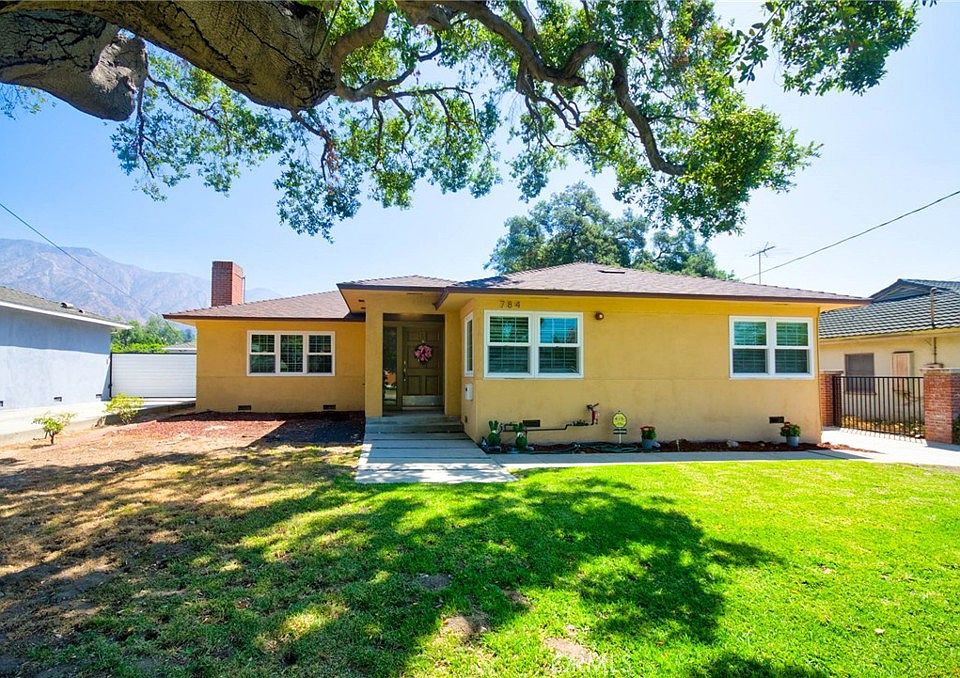 784 Eaton Drive in Pasadena is a beautifully remodeled and expanded single-story 5-bedroom, 3-bathroom home in the sought-after Daisy Villa neighborhood. Originally built in 1947, a major 2015 addition and full renovation expanded the home on a generous 12,223 sqft lot. Upgrades include paid-off solar panels, dual-pane vinyl windows, and wood flooring throughout. A welcoming foyer opens to a bright living room with a cozy fireplace, while the chef’s kitchen features granite countertops, stainless steel appliances, a breakfast bar, custom cabinetry, and a charming garden window. The front wing offers a junior en suite, two additional bedrooms, and a full bath. The addition includes a spacious family room with a large bifold glass door opening to the backyard, a fourth bedroom, and the primary suite—complete with ample closet space and an updated bath. All bathrooms are tastefully renovated. A gated driveway leads to a detached 3-car garage, with an ADU design concept plan for a future unit—ideal as an in-law suite, guest quarters, or rental income. Conveniently close to the 210 Freeway, Whole Foods, Trader Joe’s, The Home Depot, Amazon Fresh, Target, Sunnyslope Park, and Gwinn Park. The backyard offers a serene setting for entertaining, gardening, or relaxing with beautiful mountain views.