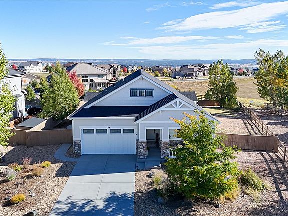 Welcome to this stunning ranch-style home in the sought-after Castlewood Ranch community of Castle Rock. Perfectly positioned on a spacious 1/3-acre lot, this beautifully updated home backs to an open space that is surrounded by custom multi-million dollar homes. In the backdrop are unobstructed views of the foothill mountains. Contiguous to the open space are 681 acres of protected open land "Lost Canyon Ranch" purchased by the City of Castle Rock in 2024—land that cannot be built on, ensuring your privacy and views will remain forever intact. If you're looking for privacy this home offers it in rare abundance. Inside, you'll find a light-filled layout featuring high ceilings and 8 foot doors throughout, three generous bedrooms, a bonus room ideal for a home office, gym, or can be converted to a 4th BR. There are two full bathrooms. The primary suite is a retreat complete with a luxurious soaking tub, dual vanities, a separate shower, and a walk-in closet. Designed for entertaining, the open-concept kitchen boasts double ovens, a gas cooktop, brand-new refrigerator, and a huge granite top island. The kitchen seamlessly flows into the dining area and the extra large Great Room that features a gas fireplace—perfect for cozy nights in or hosting guests. Step outside and take in the spectacular surroundings from two private patios ideal for soaking in the serenity of nature. There's even space in the side yard to add a pickleball court! The unfinished basement offers endless potential—customize it to suit your lifestyle with additional living space, a game room, or home theater. This is a rare opportunity to own a thoughtfully updated home with forever views, ample space, and unmatched access to nature—all just minutes from the heart of Castle Rock's beautiful Downtown as well as dining and shopping at the Outlets of Castle Rock.