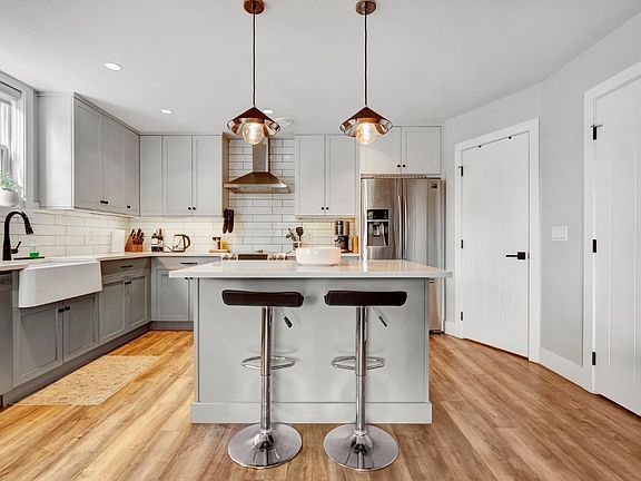 Front of the complexQuartz countersIsland seatingStainless steel samsung appliancesVinyl flooringNatural lightElectric fireplace